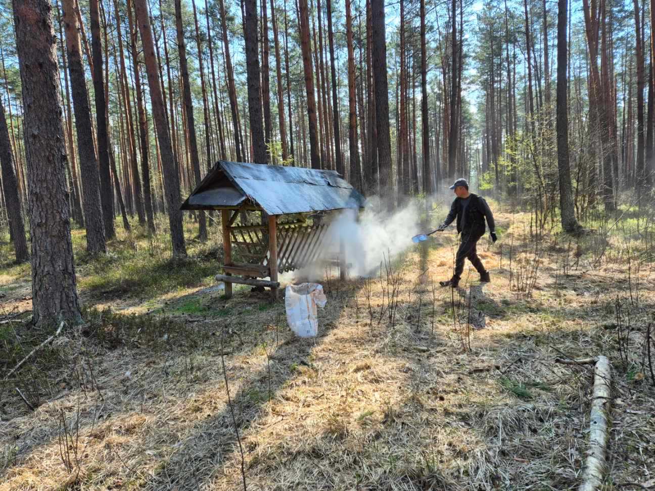 Po zimie przyszedł czas na wiosenne porządki. 18 kwietnia nasi byli stażyści: Krzysztof Wlizło i Andrzej Rudnicki wyczyścili część paśników z zalegającego siana, wybiałkowali je i wyremontowali.