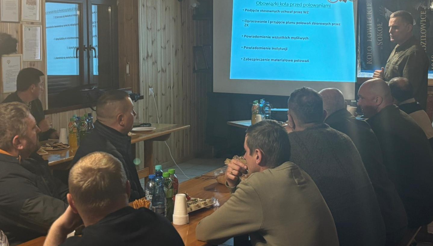 29 listopada 2025 roku w Domku Myśliwskim Koła Łowieckiego „Sokół” Zdziłowice uczestniczyliśmy w szkoleniu z zakresu zasad i warunków prowadzenia polowań zbiorowych. Szkolenie z ramienia Zarządu Okręgowego PZŁ w Tarnobrzegu poprowadził Kolega Sebastian Tuźnik.