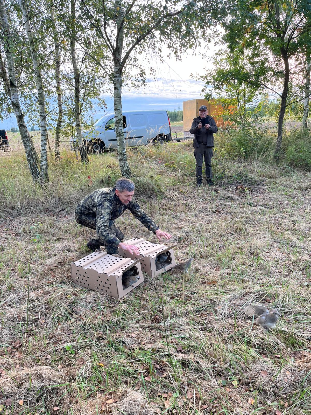 Transport otrzymanych kuropatw zapewnił Kolega Klaudiusz Morzydusza. Następnie przy pomocy Kol. Arkadiusza Andrzejczaka i Klaudiusza Lisa wsiedlili kuropatwy na dzierżawione przez nas tereny.